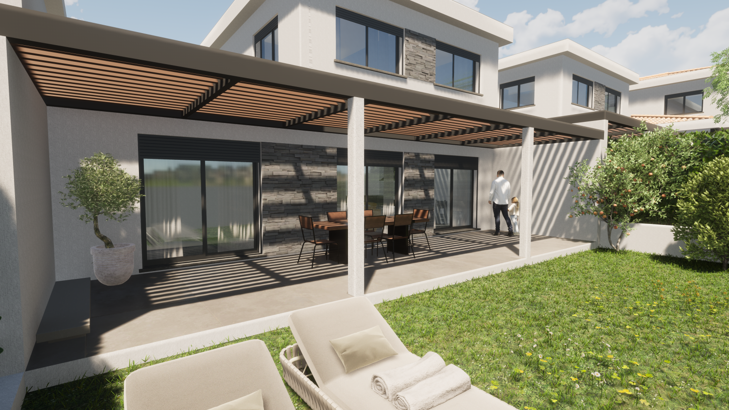 Les villas, mitoyennes par le garage, garantissent une intimité préservée grâce à des terrasses parfaitement isolées.